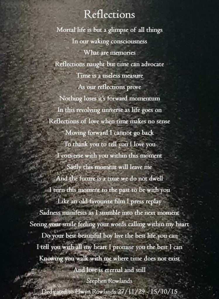 Today is fathers day, as I sit typing this blog, I am contemplating tonight’s inspired address, I am going to read out my poem Reflections, I was inspired to write about a moment of grief, for my dad who passed away in 2015. I am an advocate of spiritualist churches not only providing evidence of eternal life, but also giving comfort and support to grieving people who have loved ones passed away, and the knowledge that we can connect with our loved ones passed away, and that our loved ones are still with us and connect with us, to guide us through our earthly lives until we meet again. I very much feel that will help comfort and take a lot of the pain of grief away. I am mentally tired but Mother and Fathers Day services are very special, I am honoured to be doing this service tonight